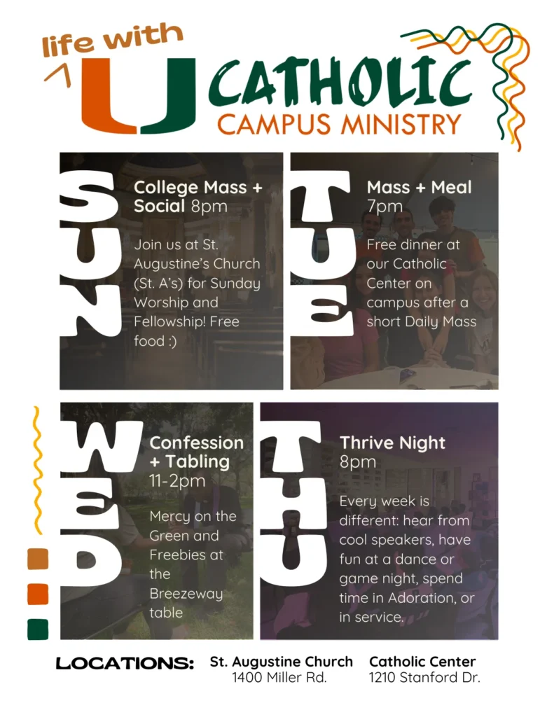 We have a vibrant community ready to welcome you and help makes the best years of your college experience. Through the many events and opportunities we offer we hope you grow closer to Christ, discover His call for you and become passionate Catholic leaders for our world and church.